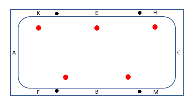Slalom, kann auch auf der Mittellinie zwischen C und A aufgebaut werden