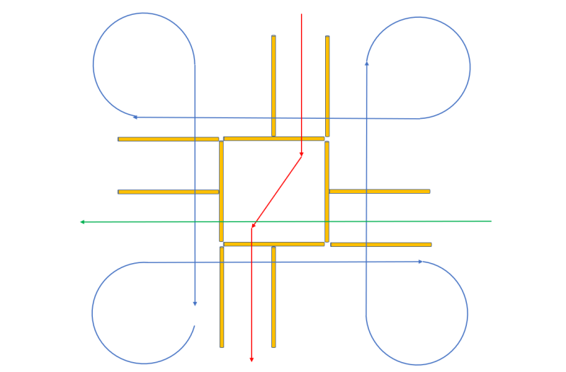 Zuerst fängt man mit einem Cavaletti auf gerader Linie an. Im Galopp das Cavaletti ruhig und gerade anreiten. Diese Übung mehrmals wiederholen. Dann kann man ein weiteres Cavaletti im Abstand von ca 3 Meter, als In-Out dazu stellen. Auch diese Übung mehrmals wiederholen. Man kann die Übung steigern, wenn man im gleichen Abstand noch bis auf 3 oder 4 Cavaletti erweitert.